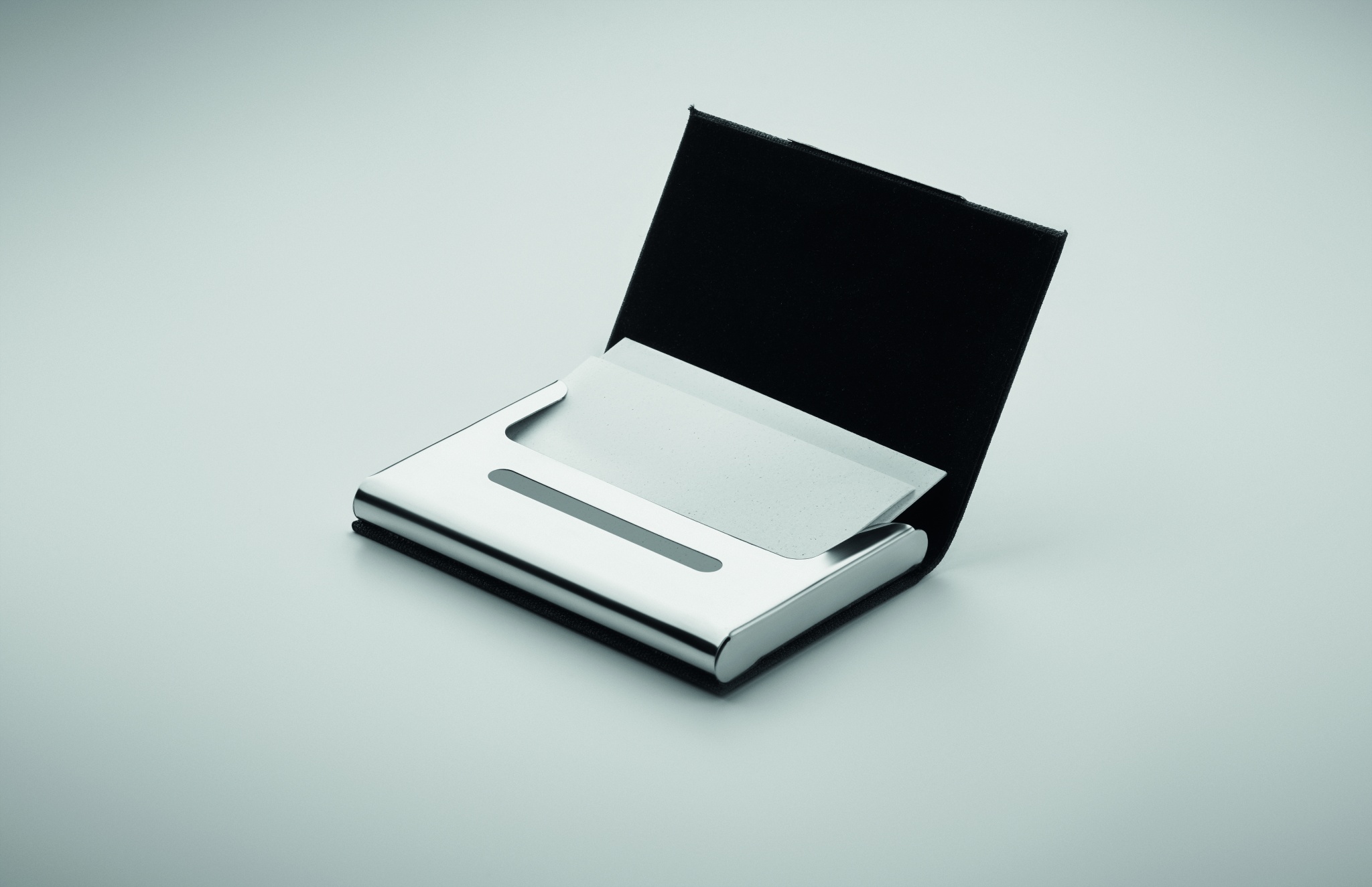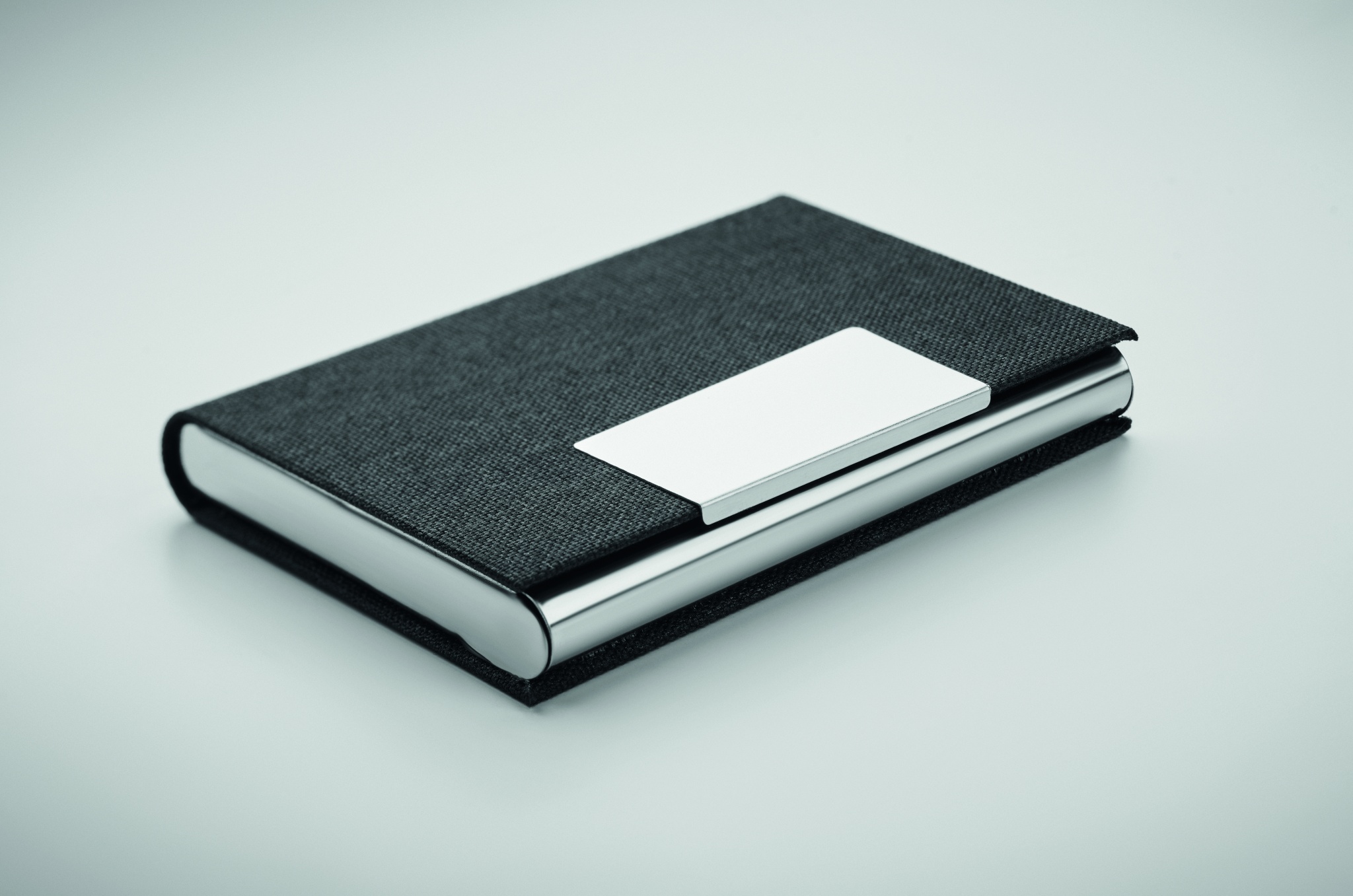 3-delat presentset. Innehållande kulspetspenna med vridfunktion i metall och RPET-polyesterdetalj, RPET-nyckelring i polyester samt RPET-korthållare i polyester med metallplatta. Blått bläck.