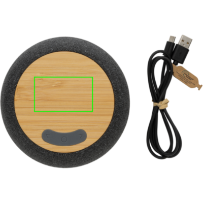5W trådlös högtalare med kristallklart ljud. Tillverkad av FSC® 100% bambu, RCS (Recycled Claim Standard) certifierad återvunnen ABS och PET. Totalt återvunnet innehåll: 51% baserat på total produktvikt. RCS certifiering säkerställer en helt certifierad leveranskedja av de återvunna materialen. Högtalarens batteri på 1200 mAh ger en speltid på upp till 6 timmar. BT 5.3 för smidig anslutning, räckvidd upp till 10 meter. Med mikrofon för att besvara inkommande samtal. Levereras i FSC® mix kraft förpackning. Laddningskabel i GRS certifierad TPE medföljer. Produkt och accessoarer är 100% PVC-fria.