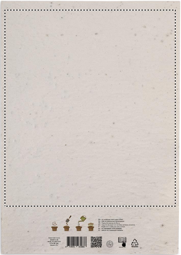 Vildblomsfrön av återvunnet papper i A4-format (80 gr/m²). Tillverkad i EU.