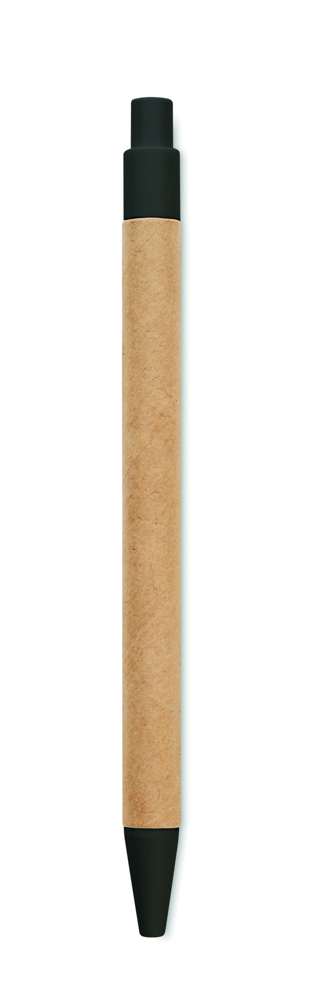 A5 anteckningsbok med omslag av hård återvunnen kartong. Inbunden med 160 linjerade sidor (80 ark återvunnet papper). Elastisk stängsningsband och pennhållare, sidomarkeringsband. Inklusive penna med kropp av återvunnet papper. Blått bläck
