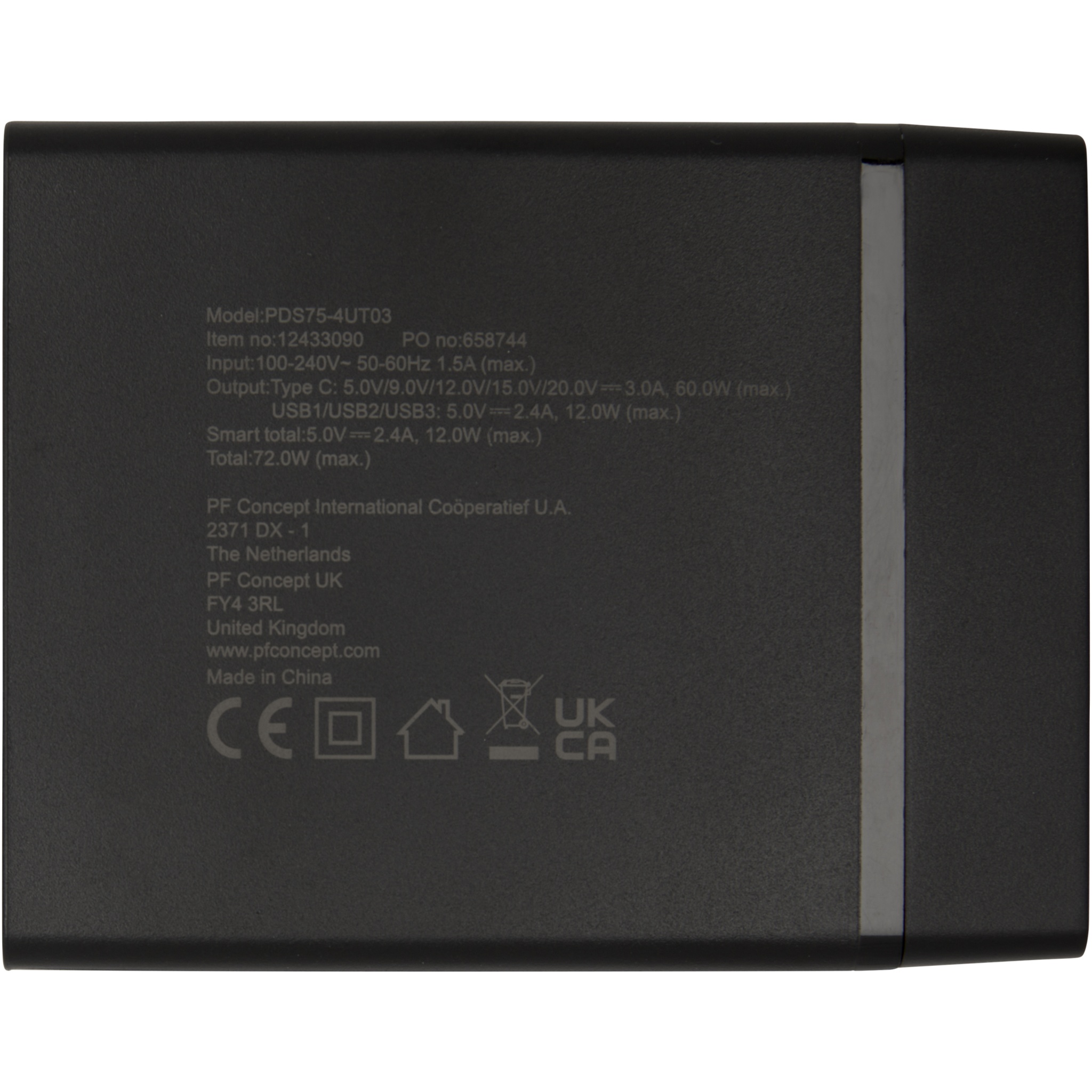 ADAPT 72 W PD-laddningsstation i återvunnen plast, Helt svart