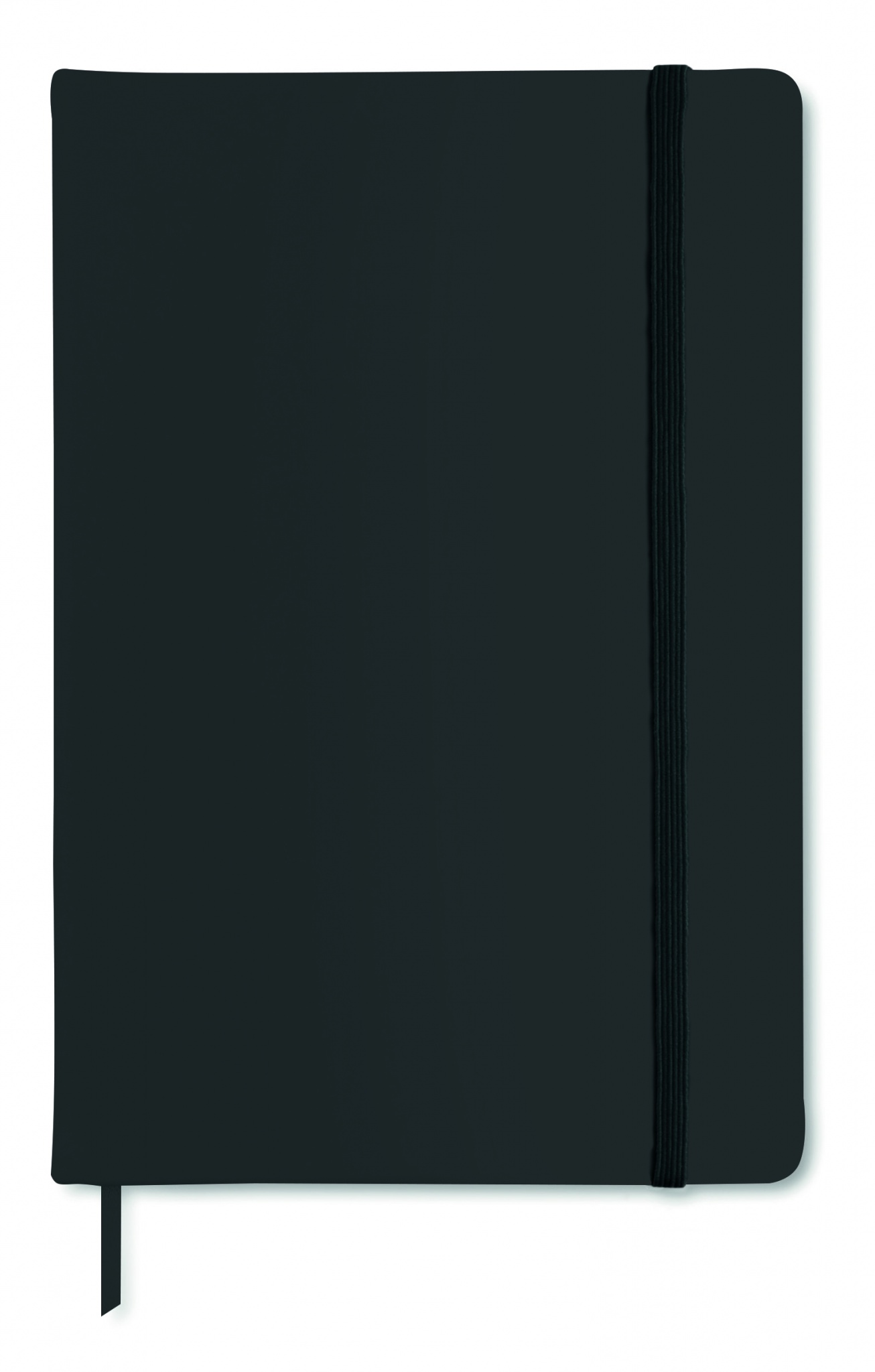 A6 Anteckningsbok med PU omslag och 96 linjerade inbundna sidor och med gummiband.