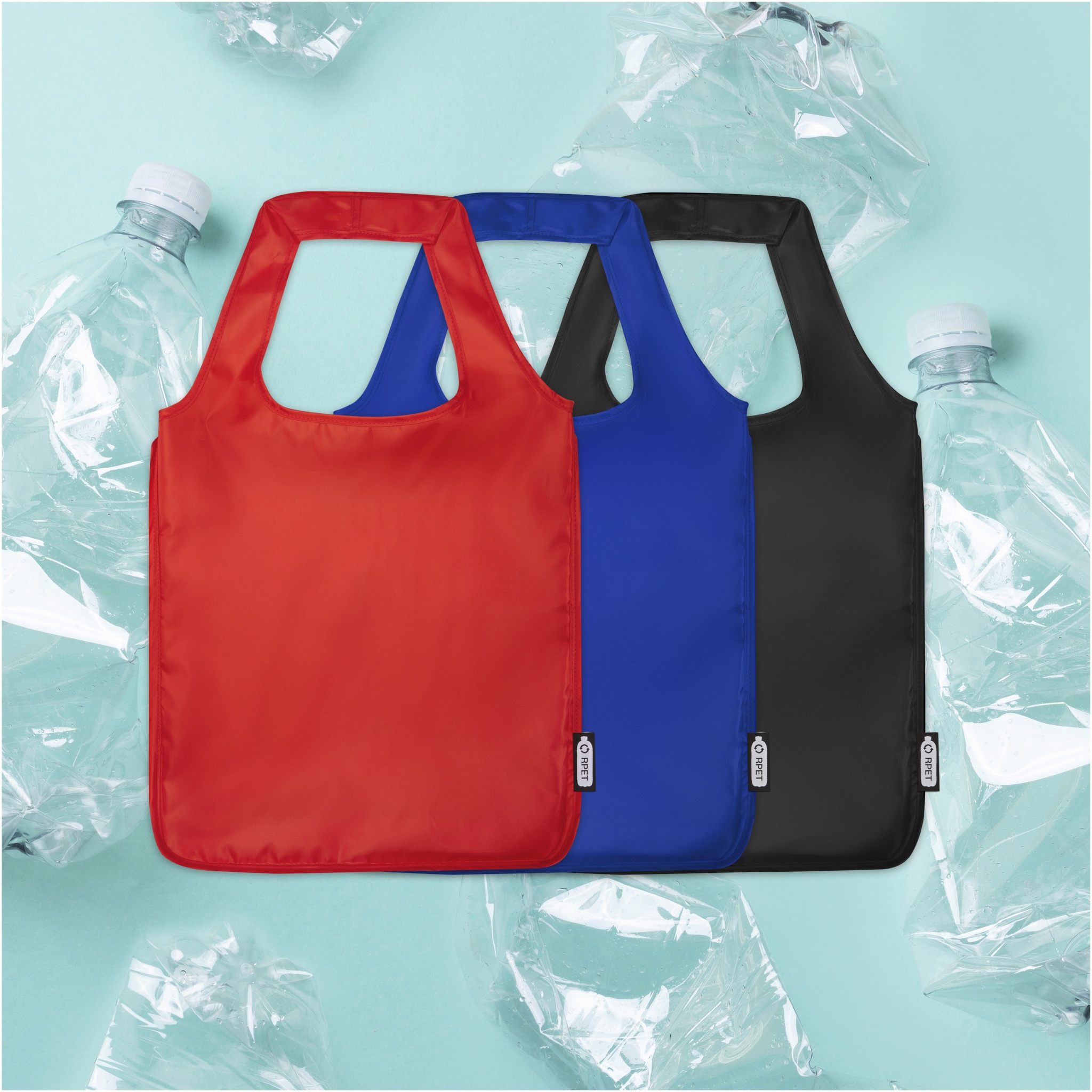 Den stora Ash-väskan av återvunnen PET är ett bra alternativ till plastpåsar. Väskan har en viktbeständighet på upp till 10 kg och har ett stort öppet huvudfack och en vikbar design tack vare den elastiska öglan. Med de 30 cm långa handtagen är väskan lätt att bära över axeln.
