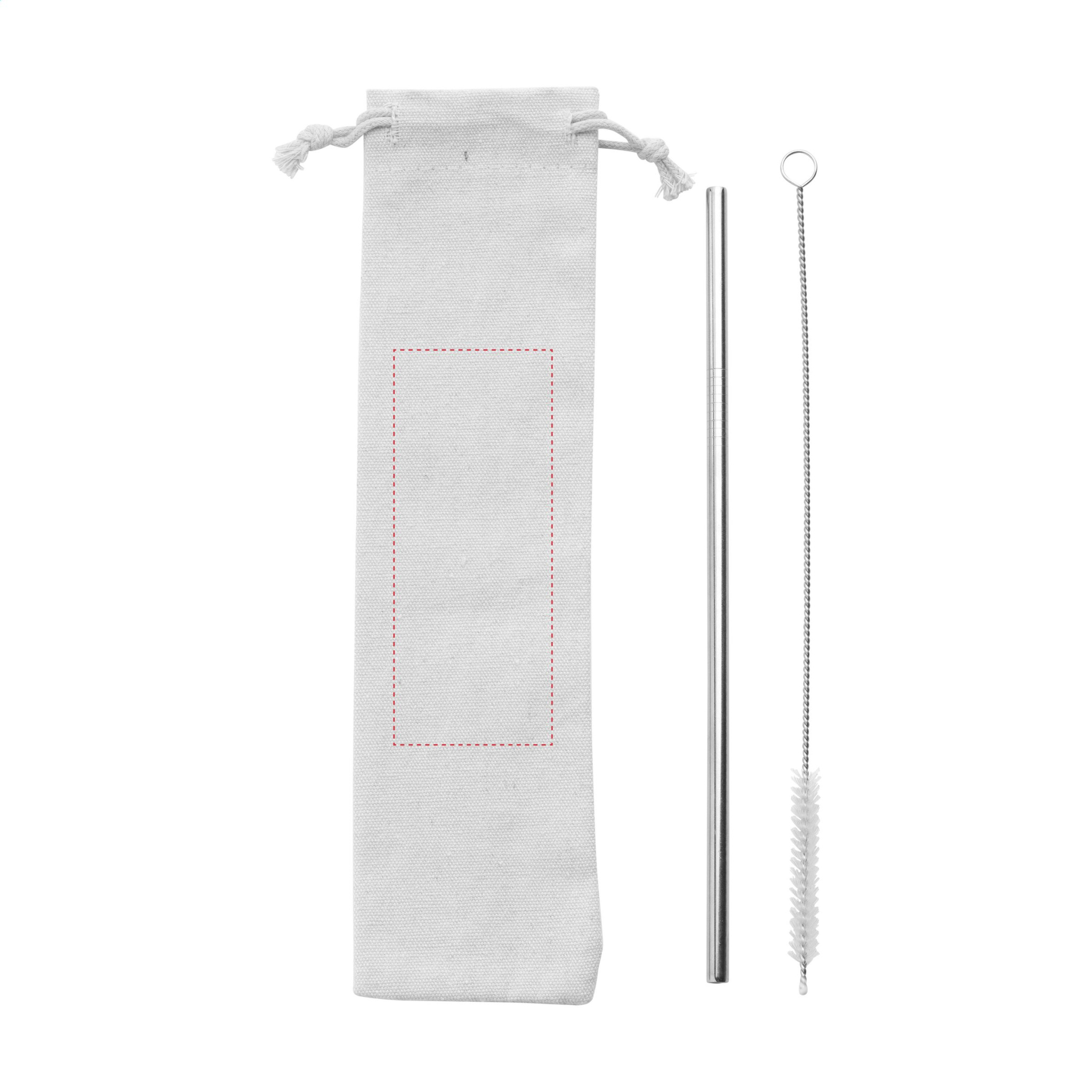 Ett återanvändbart sugrör i rostfritt stål. Ett bra alternativ till sugrör i plast. Inkluderar rengöringsborste av rostfritt stål nylon. Perfekt för kalla drycker som smoothies eller cocktails. Det ger också en visuellt tilltalande touch till alla drycker. Levereras per set med canvaspåse.
