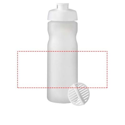 Sportflaska med enkelvägg och shakerboll för jämn blandning av proteinshakes. Utrustad med spillsäkert och uppfällbart lock. Volymkapacitet 650 ml. Tillverkad i Storbritannien. BPA-fri. EN12875-1-kompatibel och diskmaskinssäker.