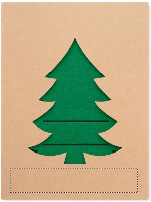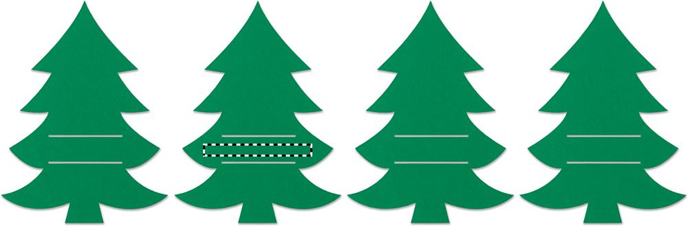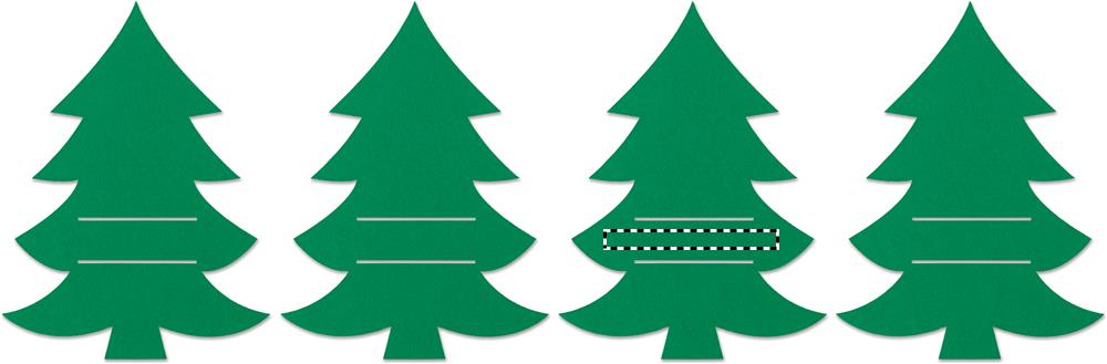 Set med 4st RPET-filtbestickhållare i julgranform i presentkartong av återvunnet papper. Eftersom alla ser fram emot julmiddagen kan dekorationerna vara lika viktiga som maten. Dekorera ditt bord och tallrikar med dsnygga bestickhållare i filt, gjorda av återvunnet PET-material.
