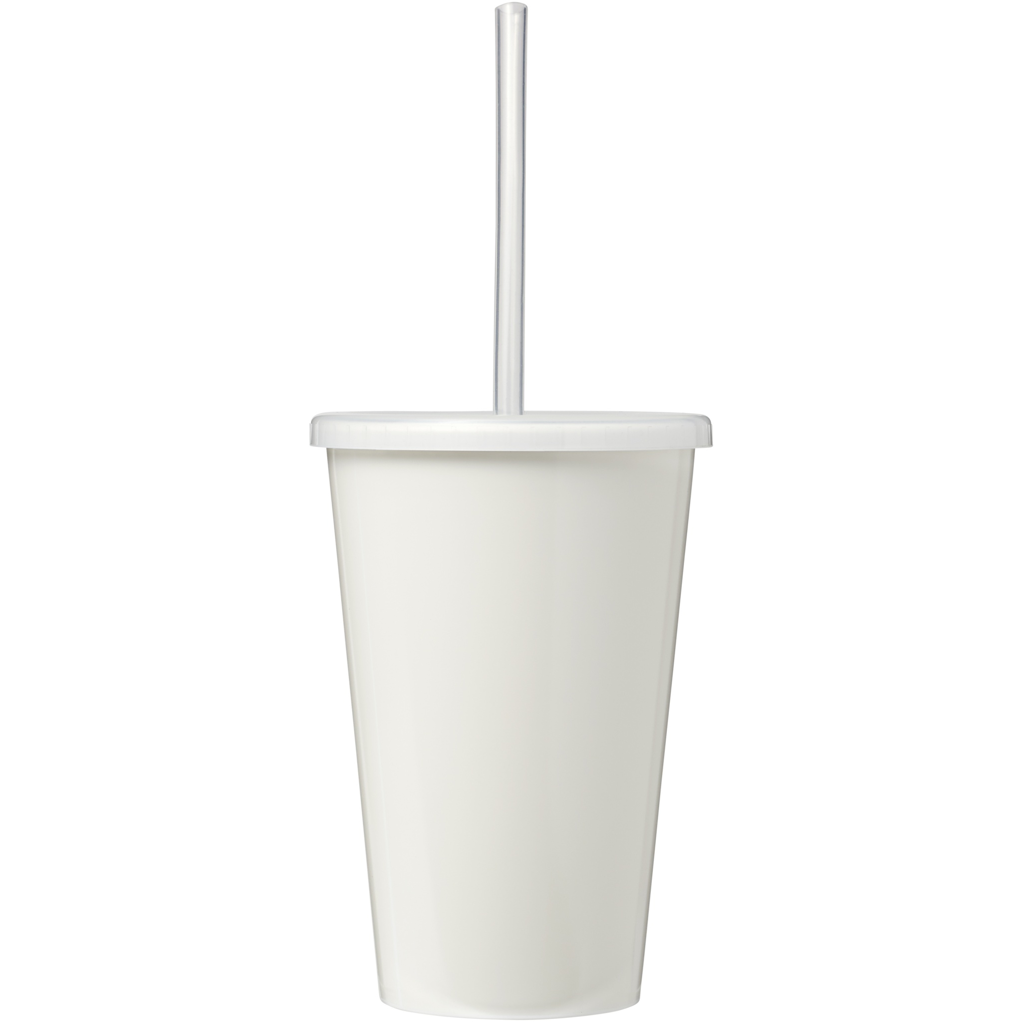 Termosmugg med dubbelvägg. Det yttre lagret på muggen är tillverkat av återvunnen plast. Muggen omsluts av ett färgat grepp som ger den en lång hållbarhet. Levereras med böjbart sugrör. Volymkapacitet 350 ml. Tillverkad i Storbritannien. BPA-fri. Förpackad i en komposterbar påse för hemmabruk.