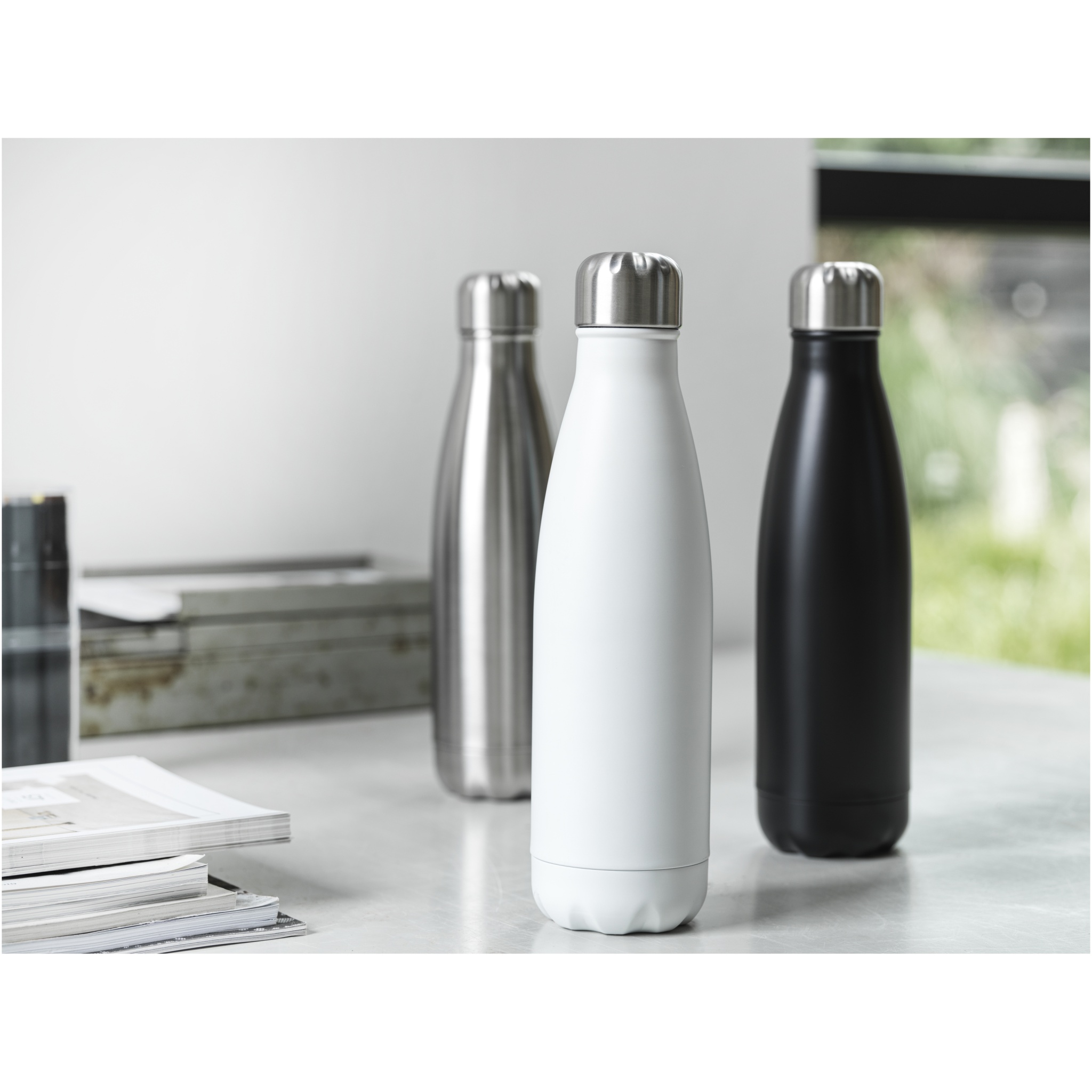 Vakuumisolerad RCS-certifierad flaska av återvunnet rostfritt stål med ikonisk design som håller drycker varma eller kalla under flera timmar. Denna snygga vattenflaska har en bas som passar i de flesta mugghållare och är en perfekt reklamartikel. Testad och godkänd enligt tysk lagstiftning om livsmedelssäkerhet (LFGB) och testad för ftalatinnehåll enligt REACH-förordningarna. Volymkapacitet 500 ml. Levereras i en presentförpackning av återvunnen kartong.