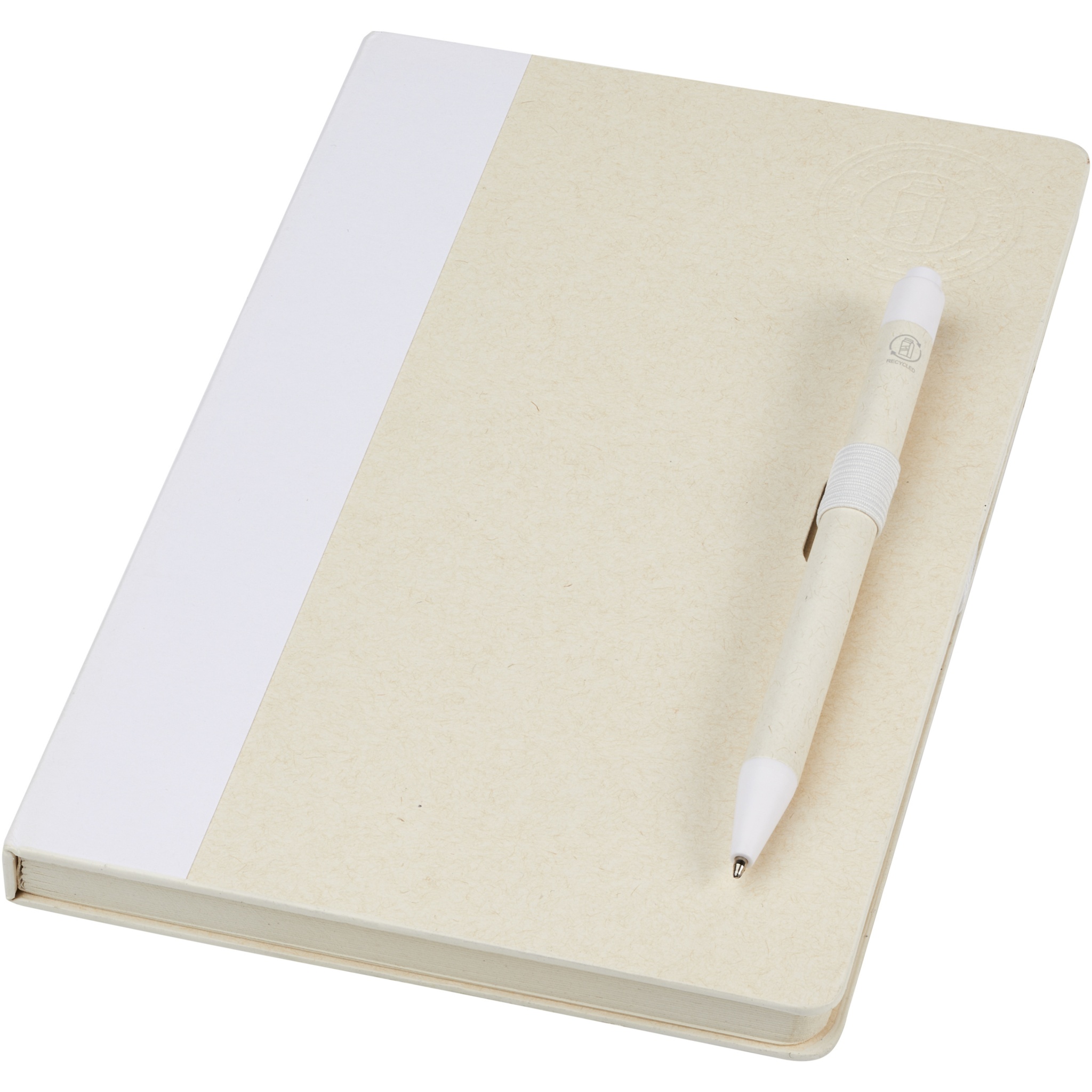 Produkter Elektroniska Dairy Dream set med anteckningsbok i A5-format och kulspetspenna gjorda av återvunna mjölkkartonger