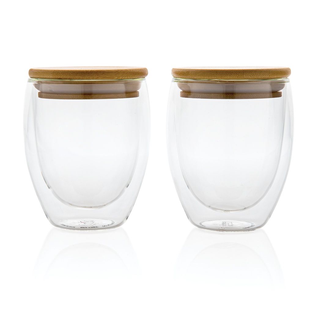 Logotrade reklamprodukter bild: Dubbelväggigt borosilikatglas med bambulock, 250ml, 2-pack