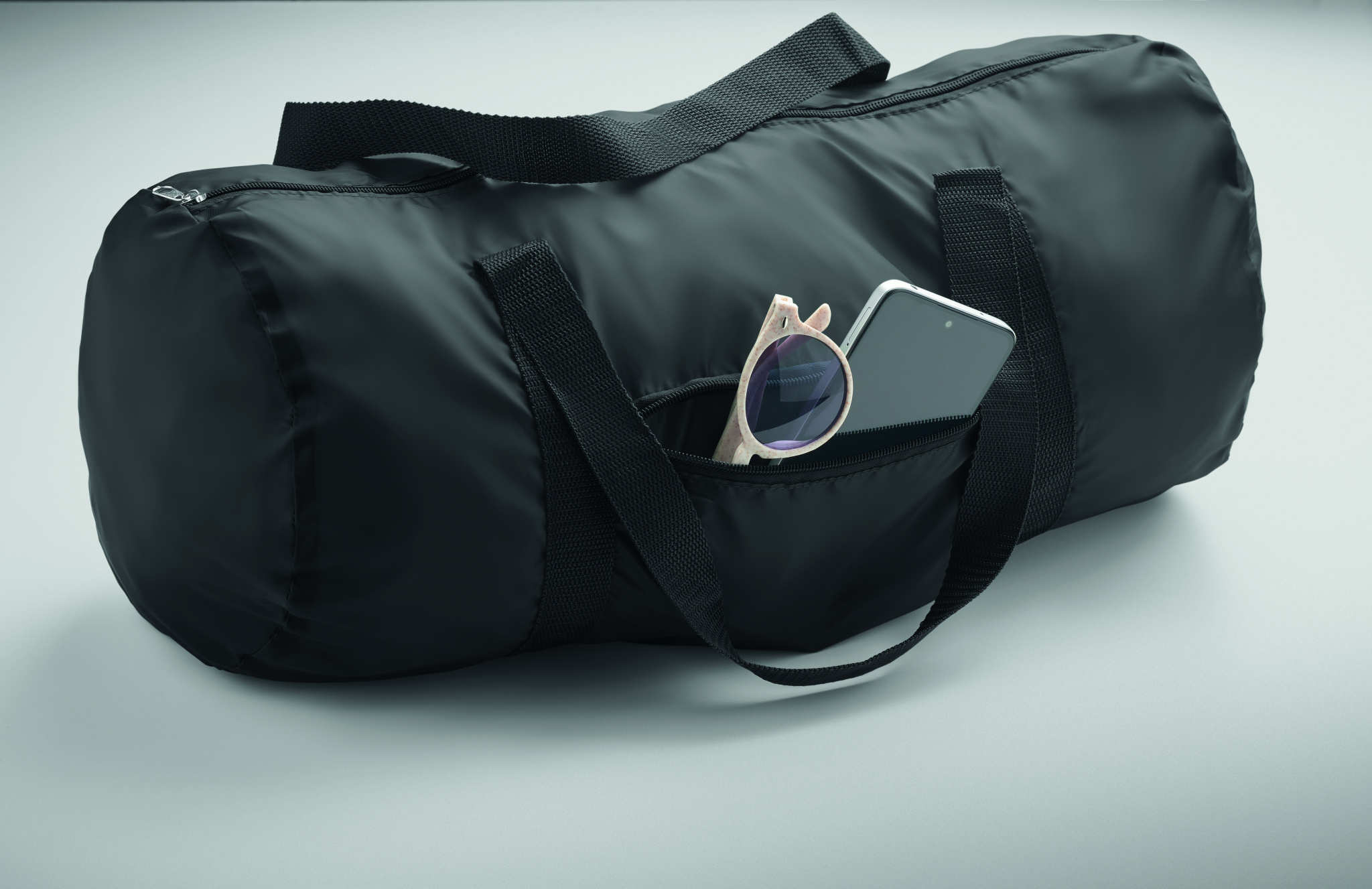 Dufflebag/väska i RPET 190T polyester med dragkedjeförsedd ficka på framsidan. Volym 20L.