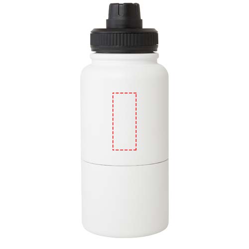 RCS-certifierad isolerad flaska i rostfritt stål som kan användas för flera ändamål med en avtagbar förvaringsbehållare. Den övre delen av flaskan har en isolerad termos av koppar med en volymkapacitet på 530 ml och håller drycker varma eller kalla i flera timmar. Den nedre delen är en behållare med dubbelvägg som rymmer upp till 340 ml. Den kan användas som en kopp för dina kalla favoritdrycker eller för förvaring av snacks eller andra små saker. Levereras i en presentförpackning av återvunnen kartong.