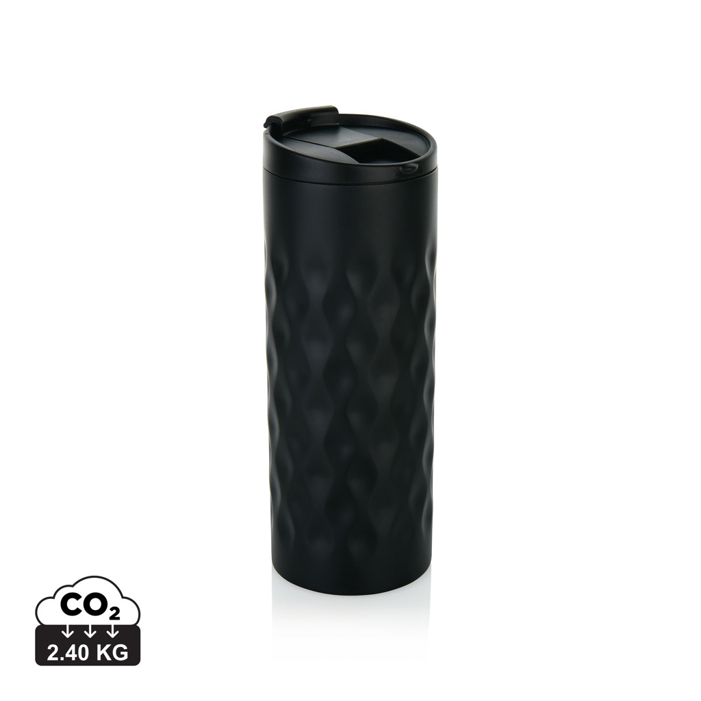 Tät termosmugg i stainless steel med dubbla väggar. Med trendig geometrisk design. Volym: 350 ml.