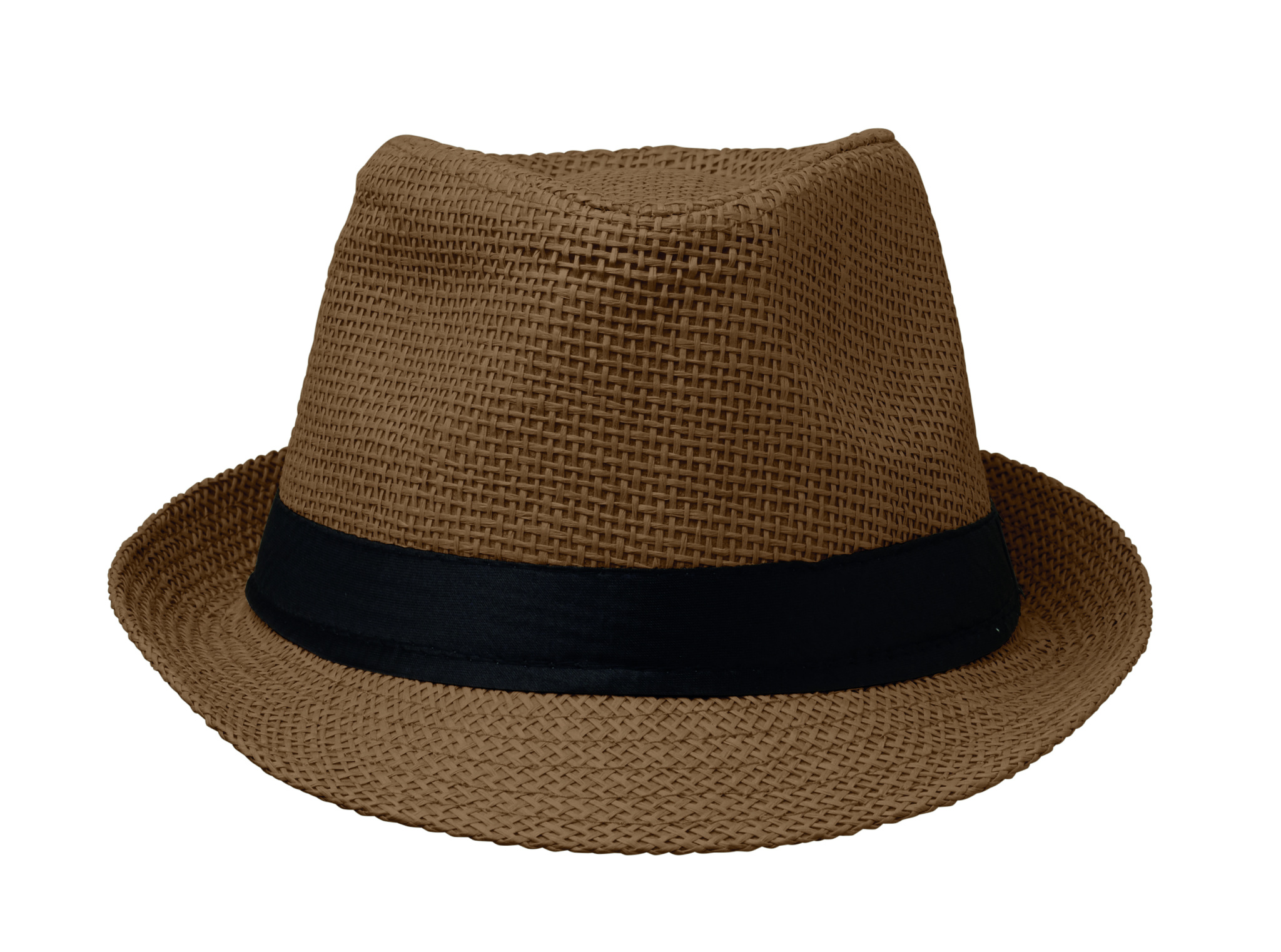 Stråhatt av papper med svart polyesterband. För otryckta beställningar kommer bandet att levereras utan att fästas på artiklarna.
