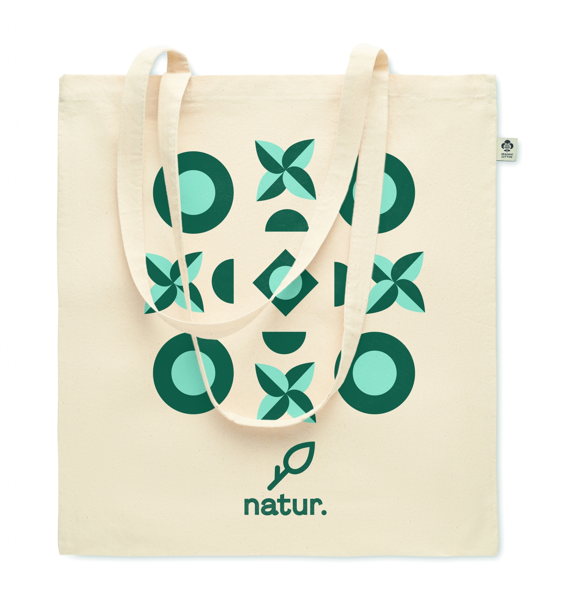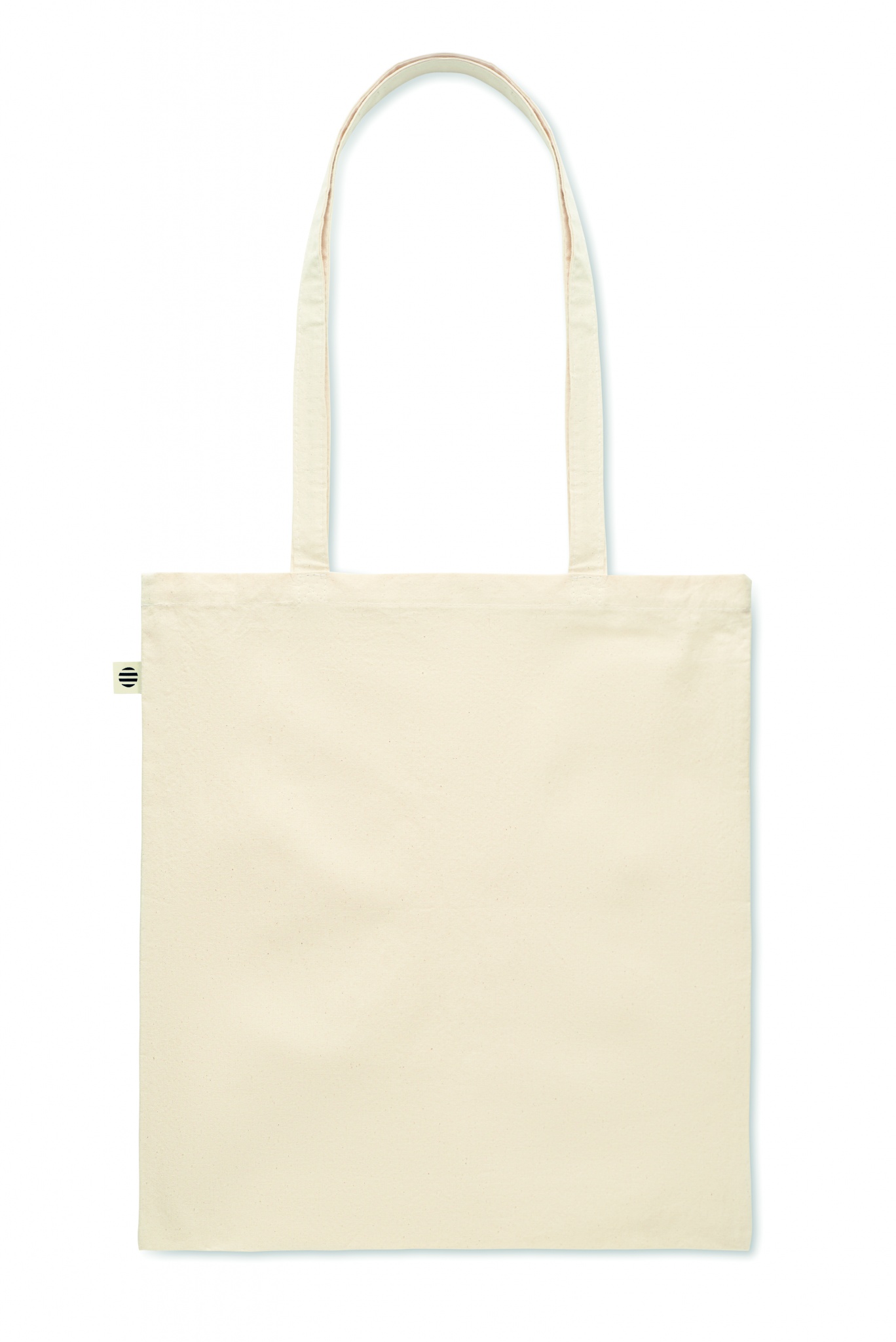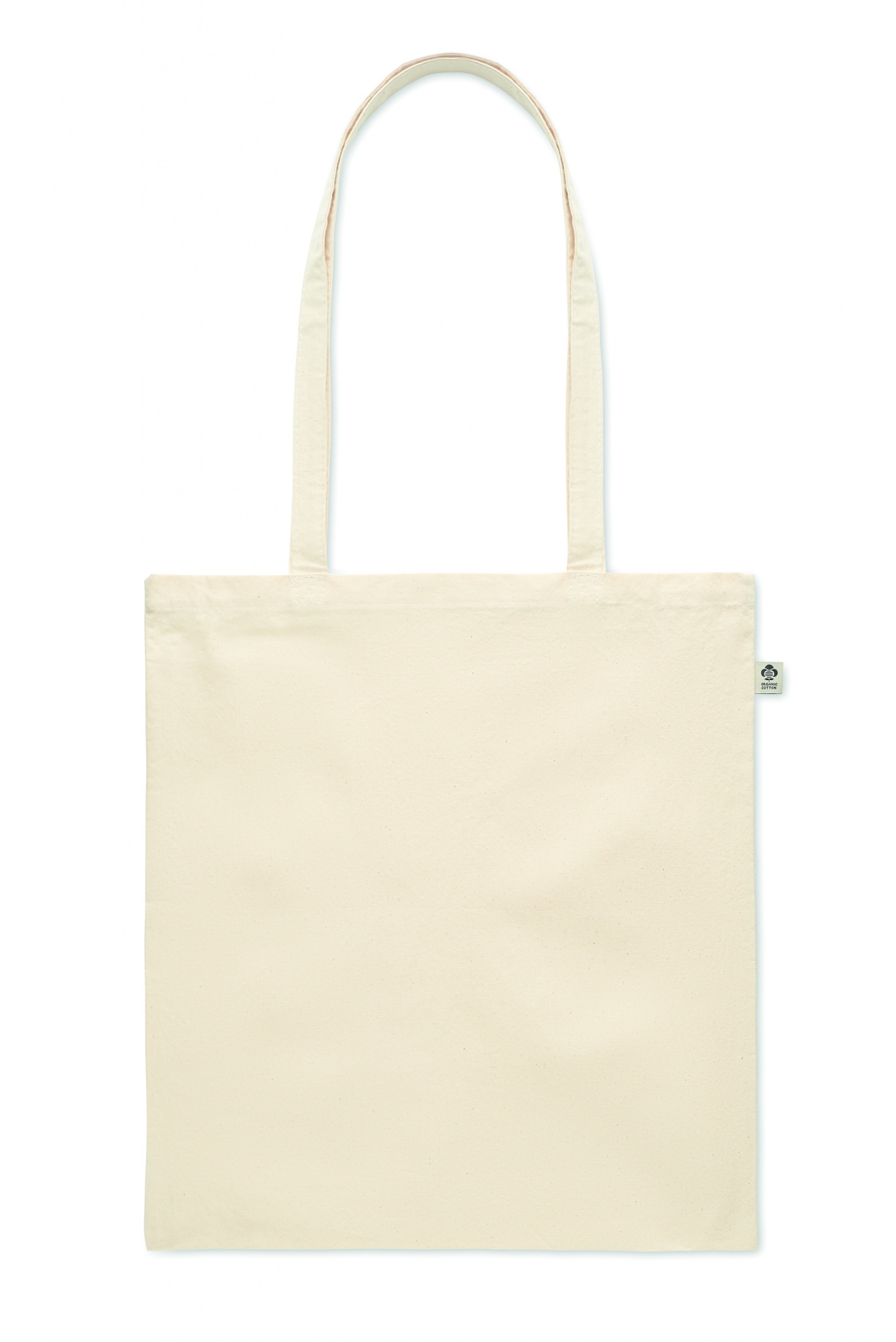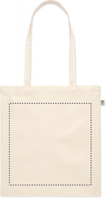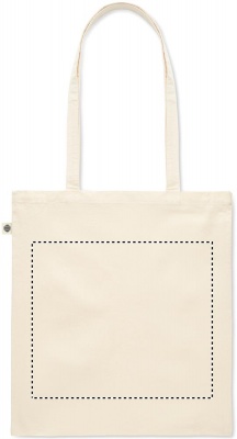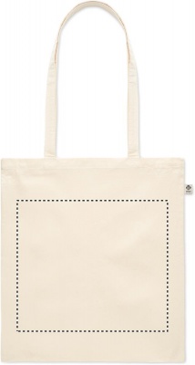Kasse i ekologisk bomull med långa handtag. 180 gr/m².