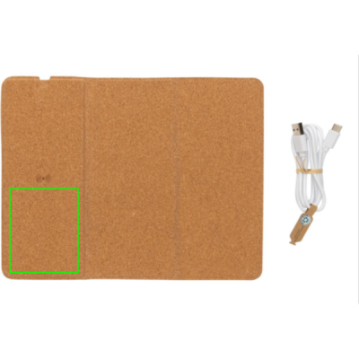 Logotrade reklamprodukter bild: Musmatta/ställ i kork 10W trådlös laddning