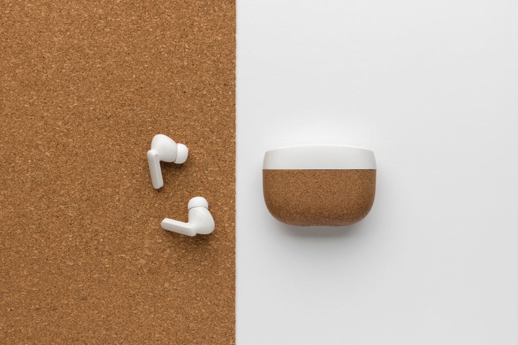 Produkter Hållbara reklamprodukter Oregon TWS öronsnäckor RCS återvunnen plast och kork