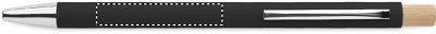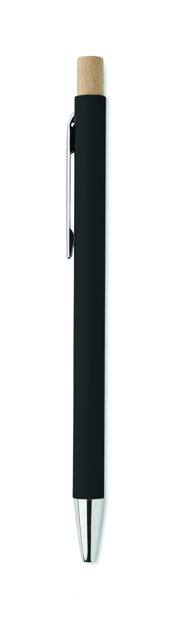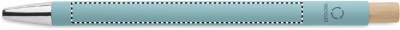 Penna i återvunnet aluminium med tryckknapp i bambu. Silverfärgad spets och klips. Blått bläck.