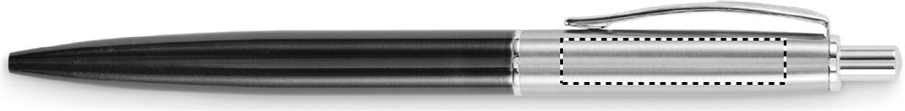 Kulspetspenna med tryckknapp och skaft i återvunnet rostfritt stål. Blått bläck. Levereras i svart låda.