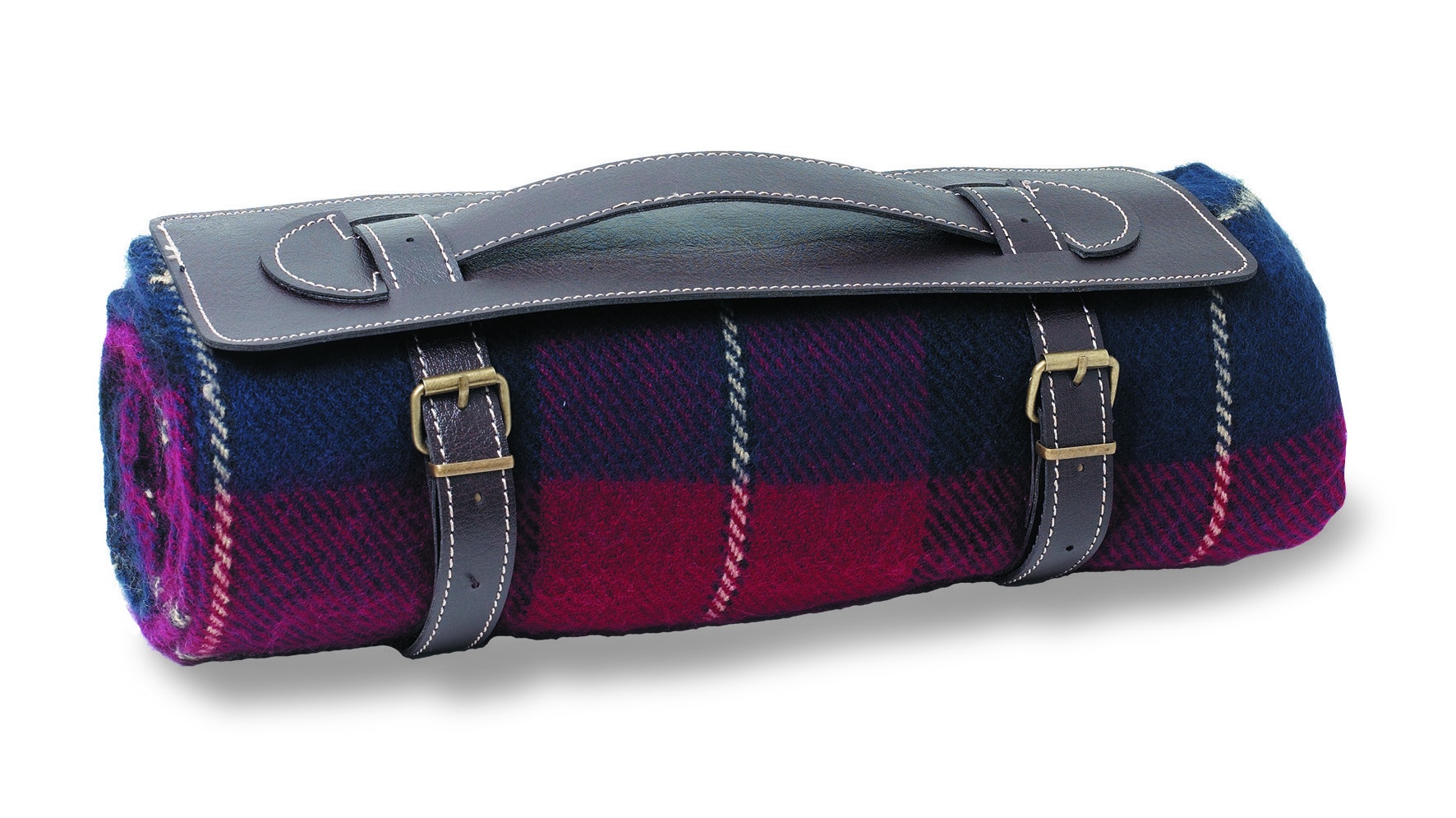 Resefilt med remmar i PVC. 100% akryl.