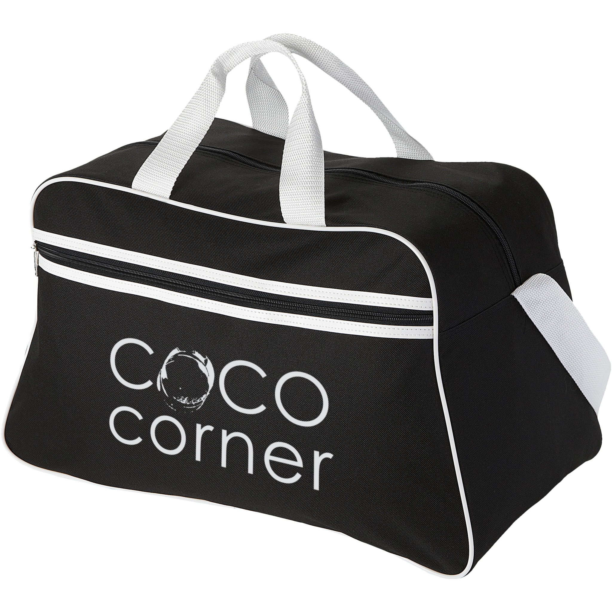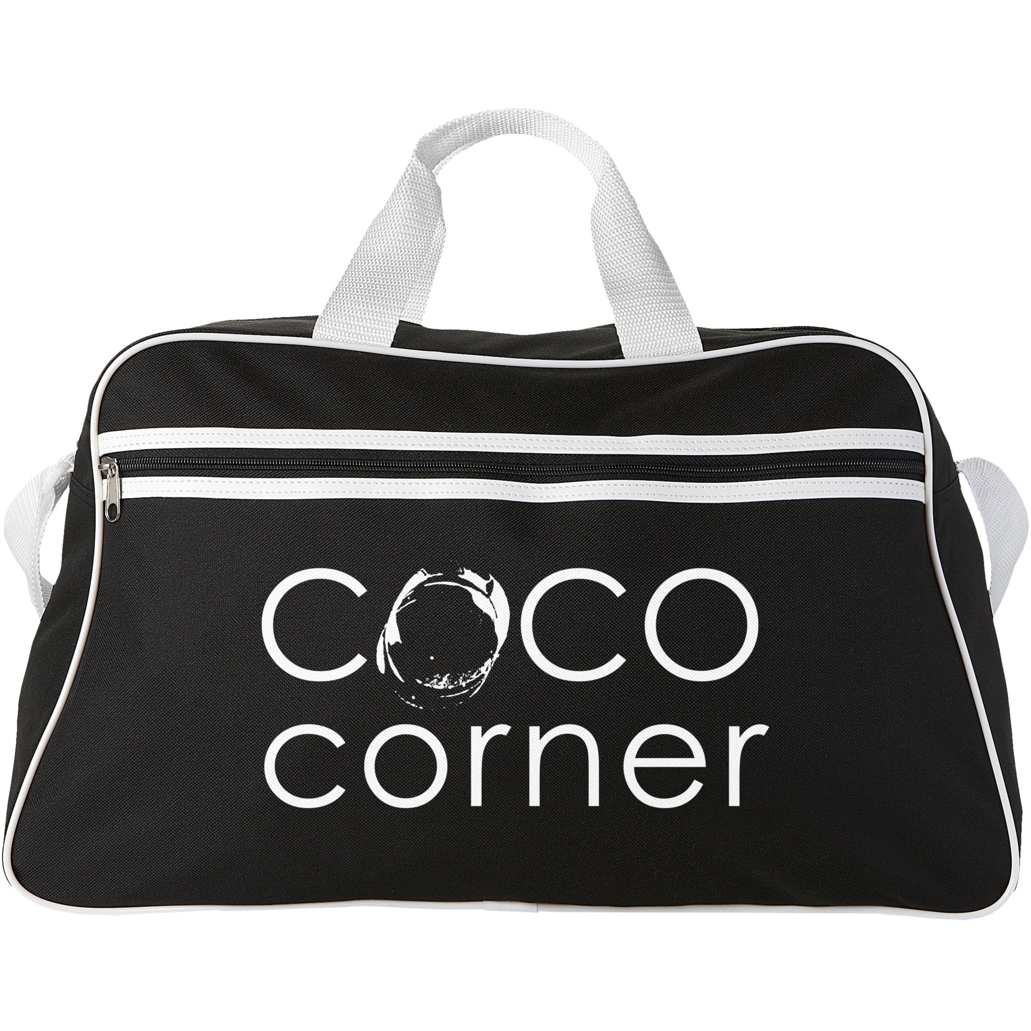 Sportväska med blixtlåsförsett huvudfack och ficka framtill med blixtlåsstängning.